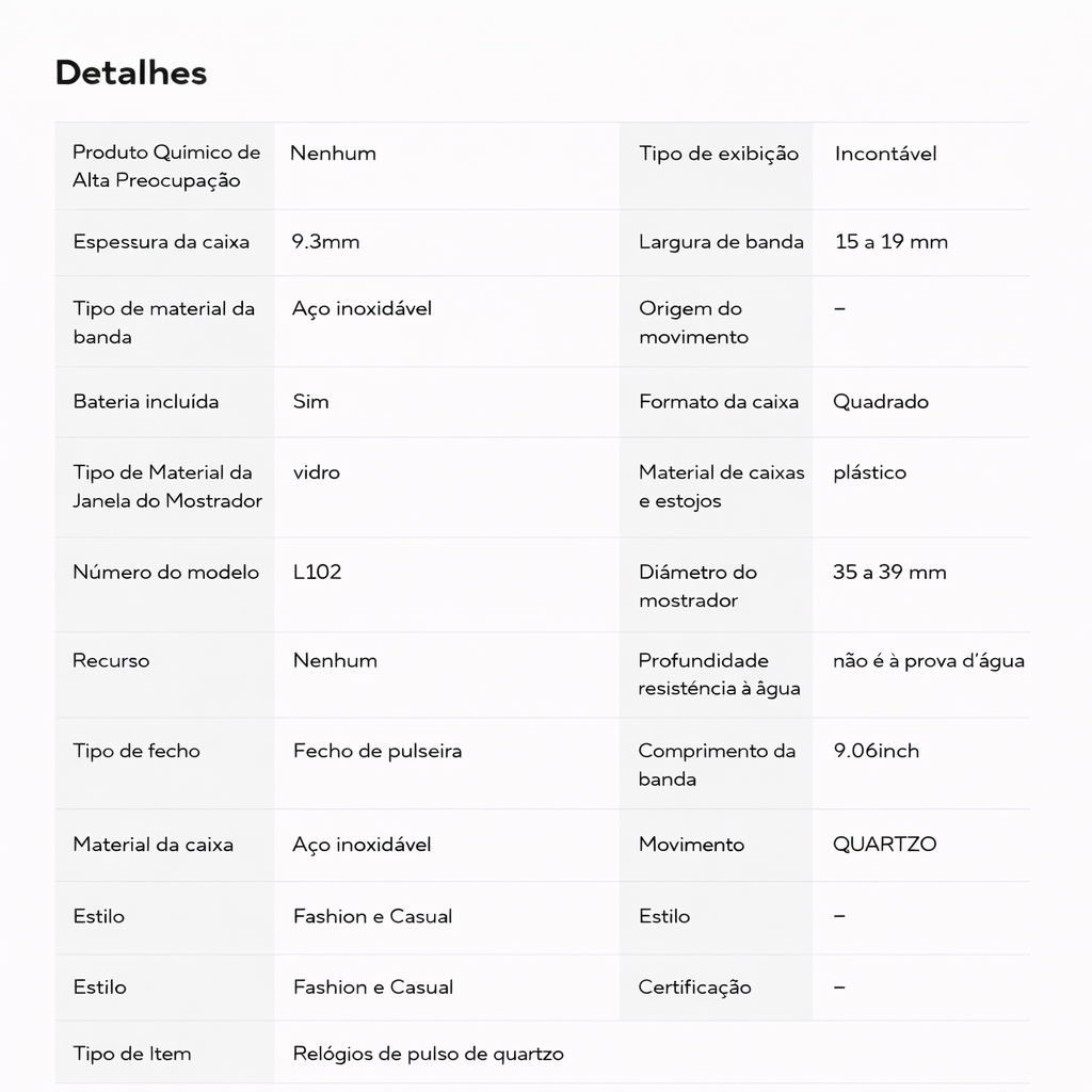 Precisão Japonesa: Equipado com o confiável movimento de Quartzo, que garante a marcação exata do tempo com baixíssima manutenção. É a precisão que você precisa, sem a complicação de um automático.