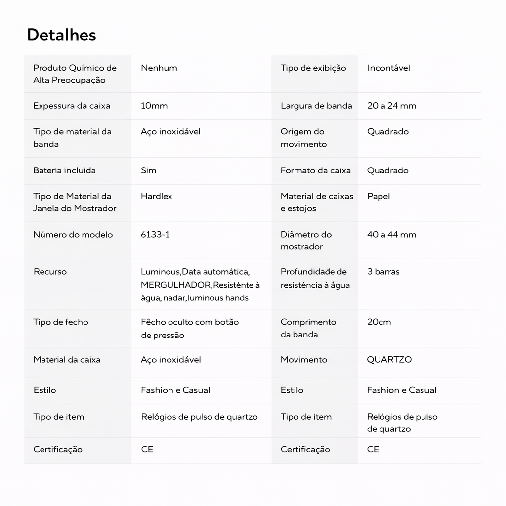 Precisão Japonesa: Equipado com o confiável movimento de Quartzo, que garante a marcação exata do tempo com baixíssima manutenção. É a precisão que você precisa, sem a complicação de um automático.